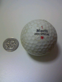 ゴルフなるものを今日初めて体育の授業で体験しました♫世間では15歳の 高校生の男の子が優勝したことで、フィーバーを迎えそうな勢いのゴルフ☆ 今日は、いつもやってるテニスの方に大人数集まったので軽いノリでゴルフ に参加←種目は選択自由 先生から説明を受け、いざやってみると私はゴル フに超不向きだということが即座に判明。それでも、続けてやっていると先生 が皆にあるゲームを提案←ゴルフ組約6、7人 ボールが入ってたカゴを自分 から5メートル位離して、そこに打ったボールが入れば先生がジュースをオゴ ってくれるというものvvそれを聞いて意気込んだものの、私の打ったボールは 真っ直ぐではなくなぜかカゴの左右へ涙 それを見ていた先生が「ボールを 打ってすぐ前を見ない方がいい」とアドバイスを←先生、言うの遅いよ泣 そ の時、私の脳裏にゴルフの掛け声なるものが浮かんできました←ほら、ある じゃん?「チャーシュー、メンッ」みたいなやつ(要はリズムが大事) 私「そうかッ!!チャーシューメンだッ!!チャー、シュー、メンッ」 ガチャン 私「ガチャン?」 先生「入ったッ!!」 私「えッ!!入ったって誰がッ!?」 顔を勢いよく上げてみると私のカゴに1つボールがッ驚 まさか本当にチャー シューメンで入るとは… そして、先生が持ってきてくれたのが↓の100円玉 (本物)先生に記念のボール欲しいと言うと簡単にくれました↓vv←良いのか |