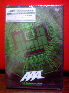 な訳で、私の最近のハマりものをご紹介☆ まずは、AAA(トリプル・エー)!!エイベックス所属の女3人、男5人計8人の ダンスユニットです♪正直、めっちゃハマってますvv大好きですvvきっかけ は、テレビ大阪で現在放送中のドラマ「デリシャス学院」。テニミュでご活躍 の永さんや龍ちゃん、相葉クンが出ると言うので妹に頼まれ引っ越し早々録 画して見たのが運命の出会いvAAAのにっしーと與クンが出てます♪主題歌 ももちろんAAA♪♪最近、フルーチェのCMソング「Get チュー!」や仮面ライダー 電王のOP「Climax Jump」などで知名度が上がってきているので、嬉しい限 りです★ で、ついにAAAの武道館ライブDVD↓買ってしまいましたッ嬉 この時の |